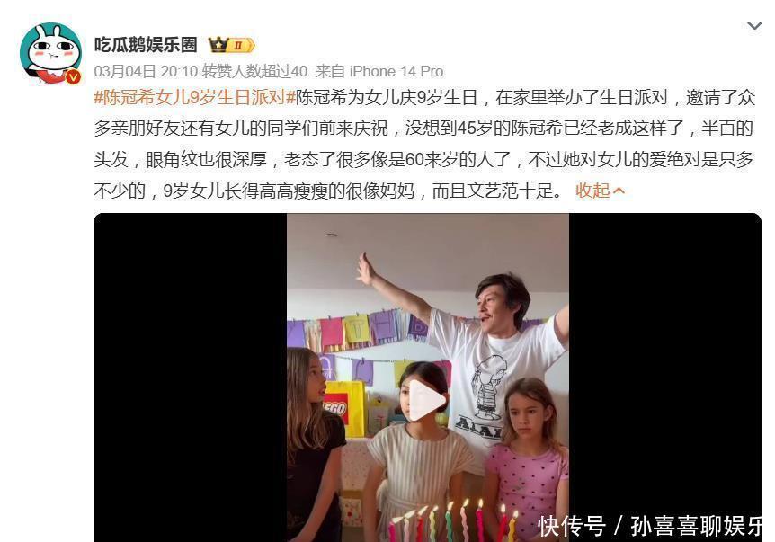 然而,焦点却意外地集中在了寿星老爸身上。镜头前的陈冠希素颜出镜,头发已半白,深刻的眼角纹和法令纹一览无余,面容略显沧桑,不修边幅的蓄须造型被不少网友调侃“宛如赵本山老师年轻的时候”。尤其是当他与保养得宜、依旧超模范儿十足的妻子秦舒培同框时,年龄感的反差被放大,被形容为“宛如两代人”。